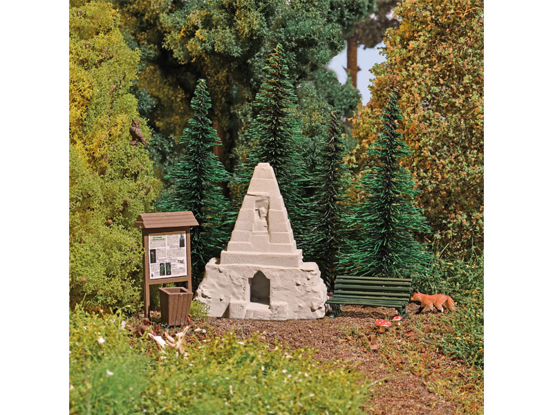 Balení obsahuje mírně omšelý rozpadající se obelisk, informační panel, 4 jedle, lavičku a odpadkový koš. Nevhodné pro děti do 14 let.