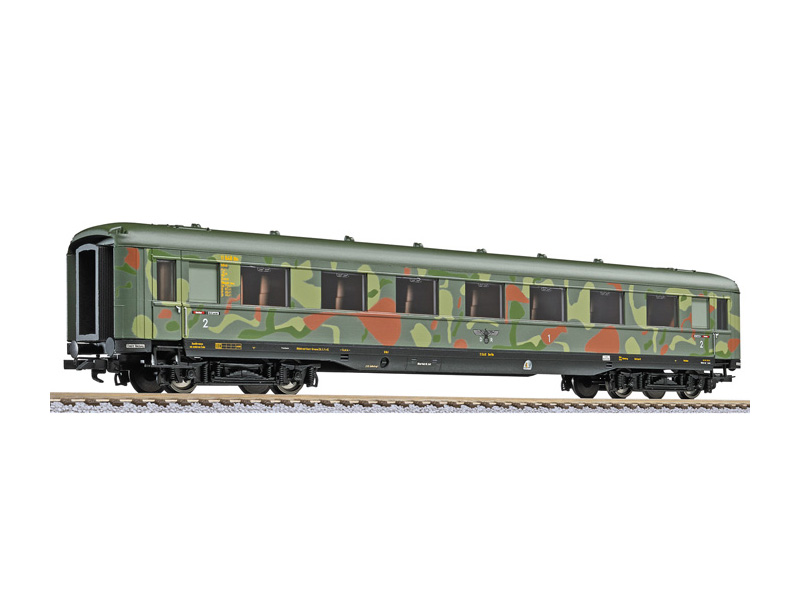 Železnice vždy hrála nezanedbatelnou roli při přepravě vojsk. Vojáci a důstojníci byli například vybaveni širokou škálou vozidel, která byla často rychle (a také často provizorně) přestavěna ze stávajícího vozového parku nebo jen jednoduše přelakována. Takového vlaky jezdily na frontu. Některá vozidla byla opatřena maskovacím nátěrem. Tyto vozy jsou perfektním doplňkem k naší vlakové soupravě maskovacího vlaku L130002. Model představuje osobní vůz 1/2. třídy, přestavěný na přepravní vůz pro důstojníky. Model s vnitřním vybavením. Šachta spřáhla dle NEM362 s kinematikou. Spřáhlo Liliput. Minimální poloměr oblouku 360 mm. Odpružené nárazníky. Provozní číslo 11 648 Berlin. Určeno pro modeláře a sběratele starší 14 let.