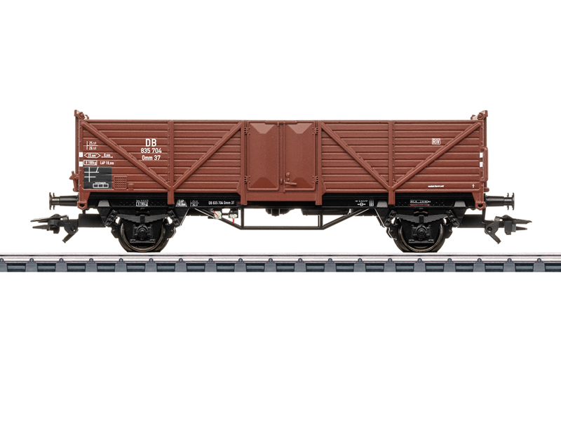 Předloha: Otevřený vůz s vysokými bočnicemi typu Omm 37 Německé spolkové dráhy (DB). Červenohnědý nátěr. Provozní stav z poloviny 50. let 20. století. Model: Vůz s příhradovou kostrou. Naložený železným šrotem. Výměnu dvojkolí za izolovaná DC E700580 provedeme zdarma. Nevhodné pro děti do 15 let.