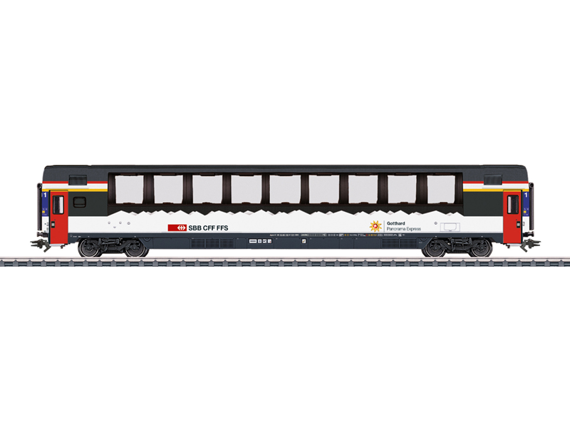 Předloha: Panoramatický rychlíkový vůz 1. třídy Apm Švýcarské federální dráhy (SBB/CFF/FFS). Provozní stav 2025. Model: Stavitelné nárazníky. Připraveno pro proudově vodivé spřáhla 7319 nebo proudově vodivá oddělitelná úzká spřáhla 72020/72021 a pro instalaci vnitřního osvětlení 7316. Měřítko délkového zmenšení 1:100. Dvojkolí stejnosměrného proudu E700580. Vhodné osobní vozy naleznete v řadě Märklin H0 pod čísly položky 43673, 43674 a 43675. Vhodnou elektrickou lokomotivu naleznete v řadě Märklin H0 pod číslem položky 39469. Kinematika krátkého spřáhla podle NEM. Není vhodné pro děti do 15 let.