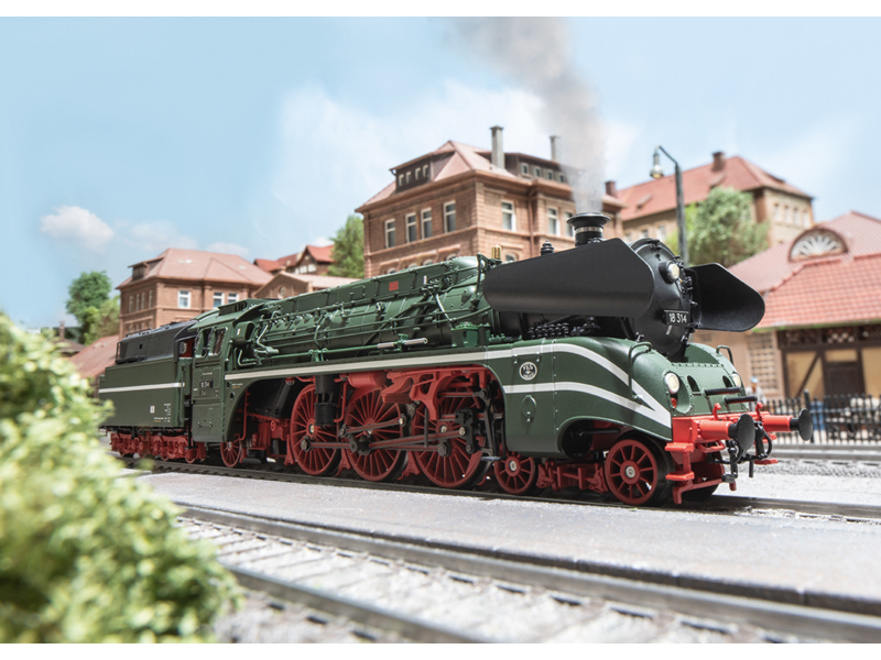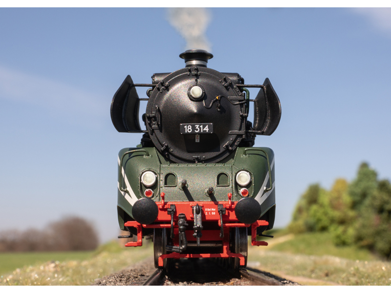 Unikátní rychlíková parní lokomotiva 18 314 DR, s olejovým tendrem, v zeleném nátěru, nazývaná Schorsch. Od roku 1986 je jedním z vrcholů Automobilového a technologického muzea v Sinsheimu. Provozní stav z roku 1968. Digitální dekodér s rozsáhlými zvukovými funkcemi. Lokomotiva i tendr jsou vyrobeny převážně z kovu. Regulovaný vysoce výkonný motor se setrvačníkem v kotli. Světla měnící se se směrem jízdy, teplé bílé LED diody, osvětlení kabiny strojvedoucího, lze ovládat digitálně. Minimální poloměr 360mm. Nevhodné pro děti do 15 let.
