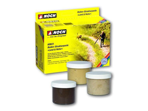 Sada obsahuje 3 nádobky s hustou krémovitou pastou – béžová (písek) 100g, okrová (jíl) 100g, hnědá (země) 100g. Jednotlivé barvy je možno libovolně míchat. Nanesená pasta po zaschnutí vytváří polní cesty, plochy venkovských dvorů, břehové plochy, sypaná nástupiště, ale i podklady luk a polí. Vhodné pro všechny velikosti. Nevhodné pro děti do 15 let.