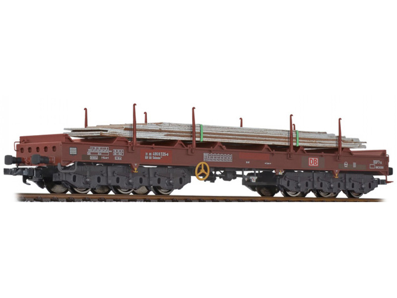Vůz s odnímatelnými čely. Pevně nasazené nesklopné klanice. Náklad ocelových plechů staženými červenou páskou. Model je patinován. Kinematika krátkého spřáhla s šachtou dle NEM362. Spřáhla Liliput. Minimální poloměr oblouku 360 mm. Provozní číslo 31 80 486 9 008-1.