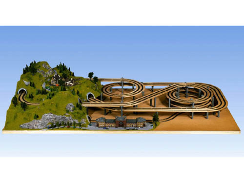Doplněk ke stoupací spirále kat.č. 53005. Obsahuje 6 překližkových segmentů = 1 kruh, výškové podpěry. Podklad má v oblouku příčné převýšení. Poloměr oblouku 420/483 mm, výška vystoupání 87 mm, šířka segmentů 145mm, vnitřní stoupání 3,3%, vnější stoupání 2,87%, vnější průměr 1078 mm. Vhodné pro pro jedno- nebo dvojkolejnou trať velikosti H0. Nevhodné pro děti do 15 let.