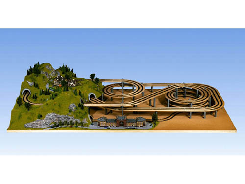 Doplněk ke stoupací spirále kat.č. 53004. Obsahuje 6 překližkových segmentů = 1 kruh, výškové podpěry. Podklad má v oblouku příčné převýšení. Poloměr oblouku 360/437,5 mm, výška vystoupání 87 mm, šířka segmentů 165mm, vnitřní stoupání 3,8%, vnější stoupání 3,17%, vnější průměr 828 mm. Vhodné pro pro jedno- nebo dvojkolejnou trať velikosti H0. Nevhodné pro děti do 15 let.