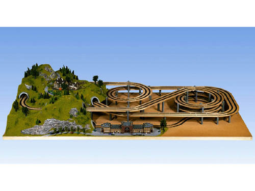 Doplněk ke stoupací spirále kat.č. 53007. Obsahuje 6 překližkových segmentů = 1 kruh, výškové podpěry. Podklad má v oblouku příčné převýšení. Poloměr oblouku 481,2/542,8 mm, výška vystoupání 87 mm, šířka segmentů 145mm, vnitřní stoupání 2,88%, vnější stoupání 2,55%, vnější průměr 1214 mm. Vhodné pro pro jedno- nebo dvojkolejnou trať velikosti H0. Nevhodné pro děti do 15 let.