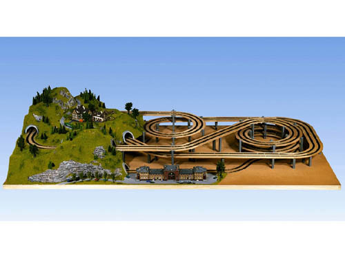 Doplněk ke stoupací spirále kat.č. 53009. Obsahuje 6 překližkových segmentů = 1 kruh, výškové podpěry. Podklad má v oblouku příčné převýšení. Poloměr oblouku 515/579,3 mm, výška vystoupání 87 mm, šířka segmentů 145mm, vnitřní stoupání 2,69%, vnější stoupání 2,39%, vnější průměr 1276 mm. Vhodné pro pro jedno- nebo dvojkolejnou trať velikosti H0. Nevhodné pro děti do 15 let.