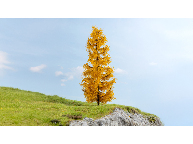 Modřín vysoký 22 cm. Přirozené zbarvení a charakteristické listy, dodávají modelu stromu působivě realistický vzhled. Vhodné pro velikosti G, 1, 0, H0, TT, N, Z. Není určeno pro děti do 14 let.