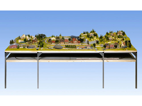 Skelet krajiny kolejiště z plastu montovaný na stabilním dřevěném rámu. Ručně barvený, se základním zatravněním. Součástí dodávky jsou mosty, trasy pod koleje uvnitř tunelů, podrobný návod se seznamem doporučených budov a kolejiva pro všechny běžné kolejové systémy. Určeno jako přední díl rozšíření kolejiště. Rozměry 140 x 31 cm, možno zkrátit na 125 x 31 cm. Vhodné pro velikosti N,Z. Nevhodné pro děti do 15 let.