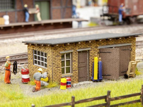 Stavebnice ze speciálního kartonu řezaného metodou Laser-Cut. Díky unikátnímu řezání rohů budovy pod úhlem 45° nejsou znát žádné stopy po lepení. Stavebnice se vyznačuje velmi jednoduchým způsobem sestavení. Vnější plochy jsou již povrchově upraveny. Speciální lepidlo přiloženo. Rozměr: 8,4 x 4,3 x 3,3 cm. Určeno pro velikost H0. Nevhodné pro děti do 15 let.