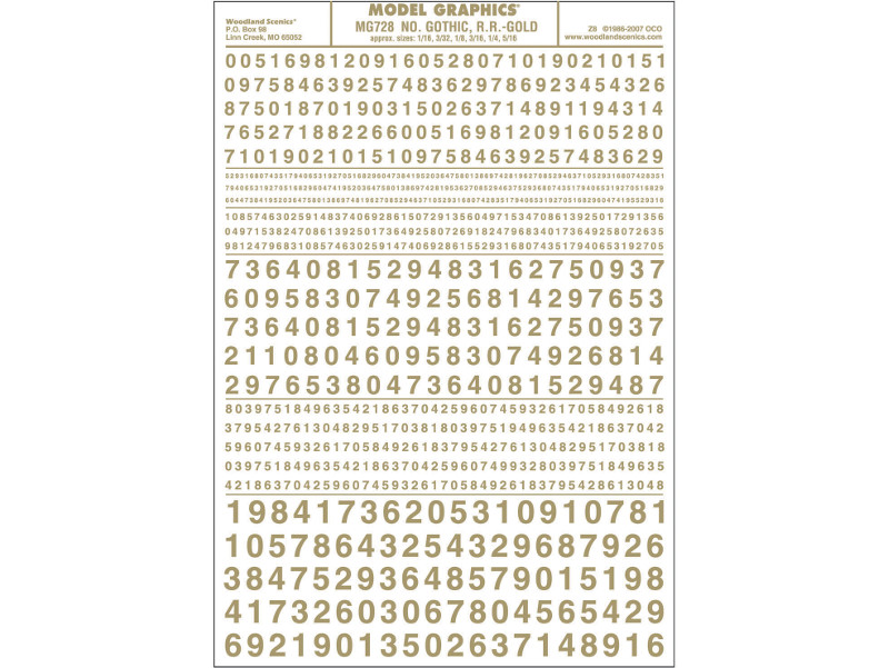 propisot číslice Gothic R.R. zlaté Woodland Scenics MG728