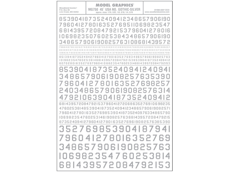 propisot číslice USA Gothic stříbrné Woodland Scenics MG750