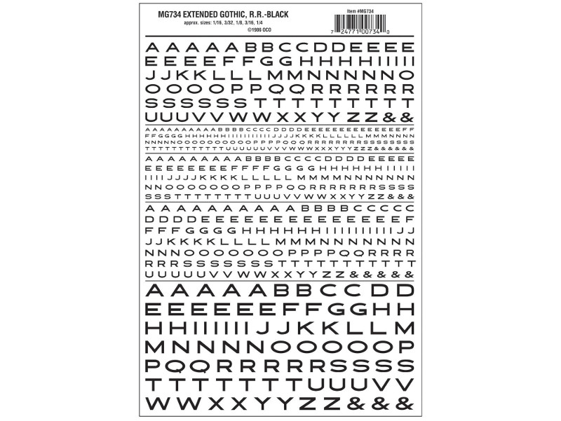 propisot písmena prodloužená Gothic R.R. černá Woodland Scenics MG734