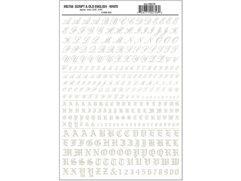 propisot písmena Script & Old English bílá Woodland Scenics MG756