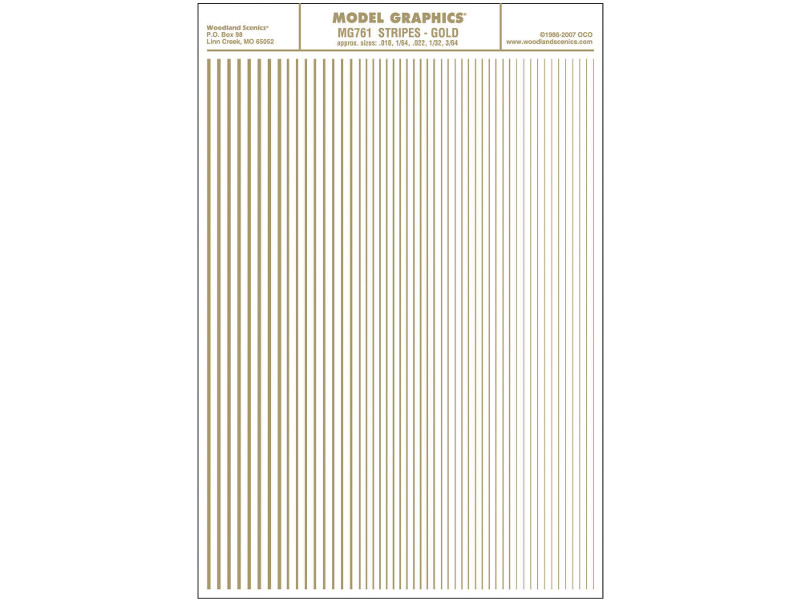 Šířka pruhů: 0,25 mm, 0,39 mm, 0,5 mm, 0,79 mm, 1,19 mm. Balení obsahuje 1 aršík.
