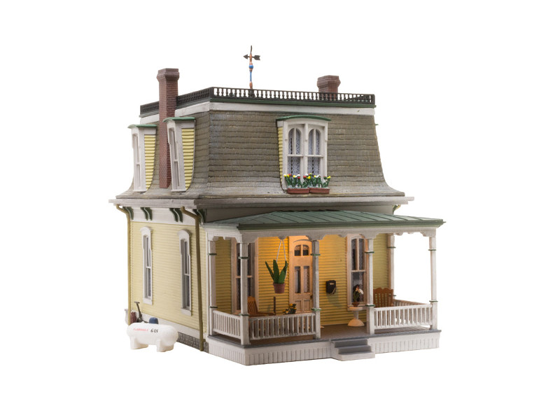 Hotový model rodinného domu s terasou. Součástí balení je mnoho dekorativních doplňků. Vnitřní LED osvětlení. Rozměr: 10,7 x 18 cm, výška: 13,9 cm. Nevhodné pro děti do 14 let!
