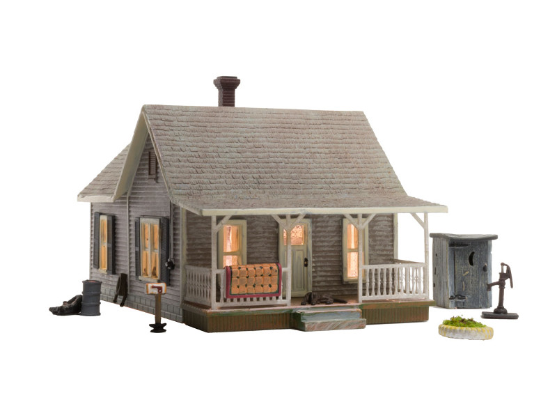Hotový model rodinného domu s terasou. Součástí balení je mnoho dekorativních doplňků. Vnitřní LED osvětlení. Rozměr: 9,52 x 13,8 cm, výška: 7,62 cm. Nevhodné pro děti do 14 let!