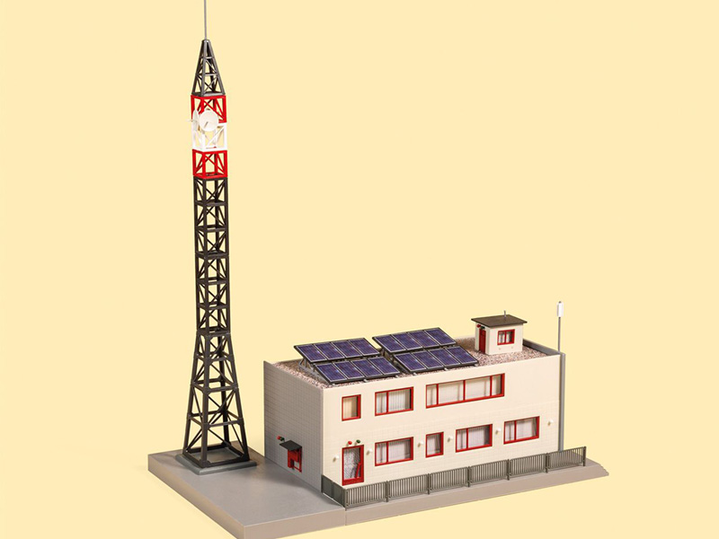 Stavebnice moderní rozhlasové stanice s rádiovým stožárem a solárními panely. Rozměry: 232 x 137 x 285 mm. Nevhodné pro děti do 14 let.