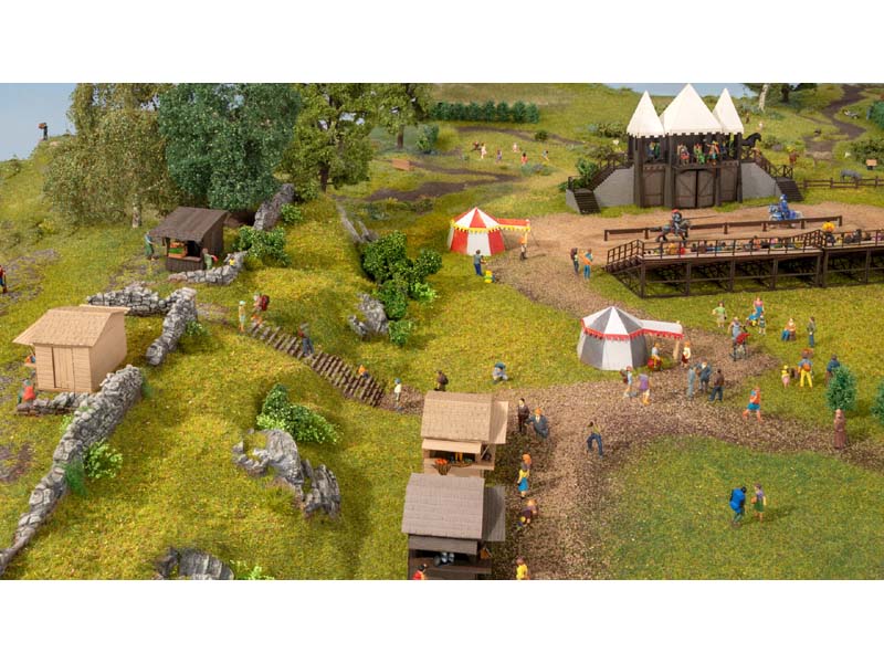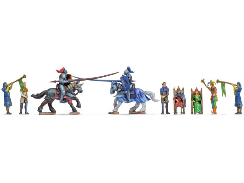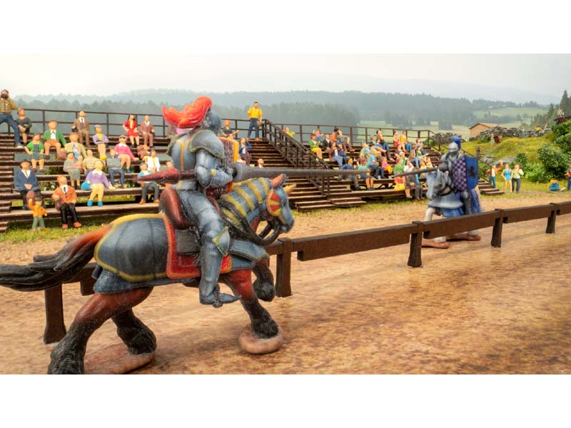 Rytířské klání obsahuje laserem vyřezávané turnajové hřiště, bránu s boxem, tribunu a 4 stany, 9 figurek z toho 2 na koních pro použití na turnajovém hřišti, mikrofon, mikrozvuk rytířského turnaje, číslovaný certifikát, podrobný návod a lepidlo. Vhodné pro velikosti H0. Není určeno pro děti do 15 let.