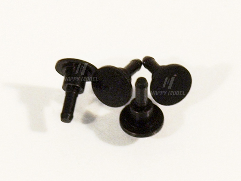 Sada obsahuje 2 kusy plochého a 2 kusy kulatého nárazníku. Průměr štítu 4,3 mm, průměr těla 2,2 mm. Barva černá.