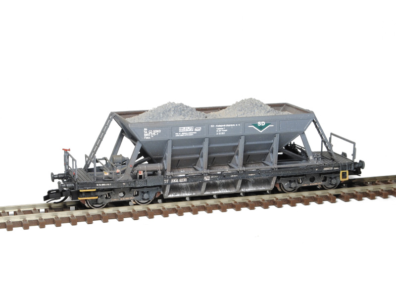 Kompletní stavebnice samovýsypného vozu původní řady Sav novějšího provedení, typ 2-220. Obsahuje probarvené plastikové výlisky na sestavení modelu včetně kinematik, spřáhel a kvalitních soustružených kovových dvojkolí, kovové lepty, závaží a imitaci nákladu. Přiložený obtisk obsahuje dvě provozní čísla. Provozovatel Severočeské doly, V.-VI.epocha. Nevhodné pro děti do 15 let.