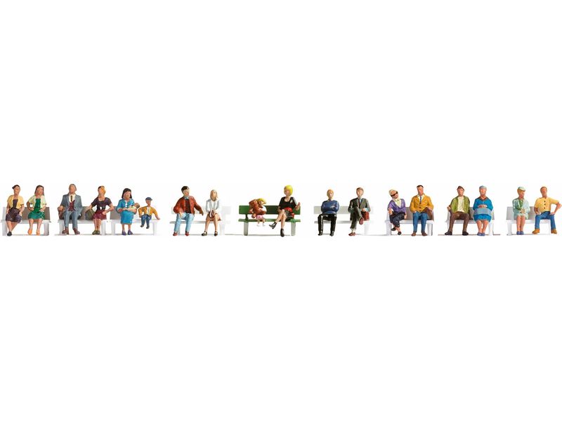 Sada XL Sedící figurky obsahuje sedící figurky pro každou scénu. Kromě rodičů, kteří si sednou na krátkou přestávku se svými dětmi, zde najdete také obchodníky, kteří mají schůzku, a chodce, kteří se chtějí pokochat výhledem.