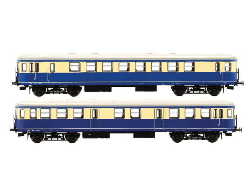 Dvoudílná sada přípojných vozů se skládá z vozu 7758.14 s půlenými okny a služebním oddílem a 7759.04 s půlenými okny a služebním oddílem, oba v modro – krémovém provedení se stříbrnou střechou. Provedení High End Edition. Minimální poloměr oblouku 419 mm. Není vhodné pro děti do 14 let.