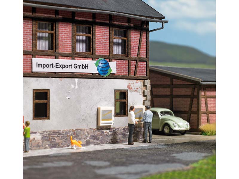 Pro realistickou animaci vašeho modelového světa. S tematickými doplňky a alespoň jednou figurkou ve vhodné poloze. 2 automaty na cigarety v originálním designu a 2 kuřáci. S kamennou stěnou, délka 240 mm.