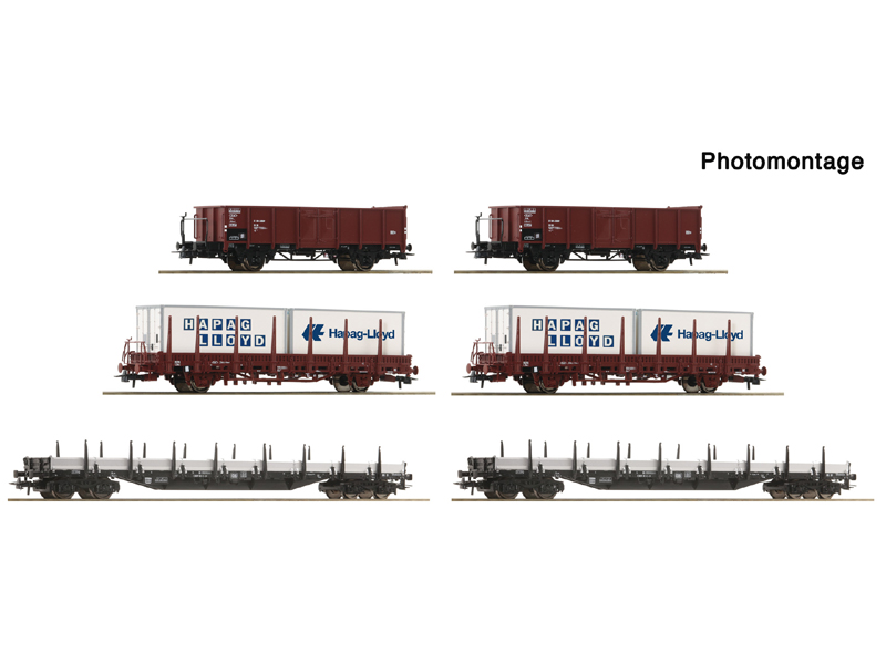 Set obsahuje dva otevřené vozy E 040, dva klanicové vozy Kbgs a dva klanicové vozy Res. Kinematika krátkého spřáhla dle NEM 362. Nejmenší poloměr oblouku 358 mm. Není vhodné pro děti do 14 let.