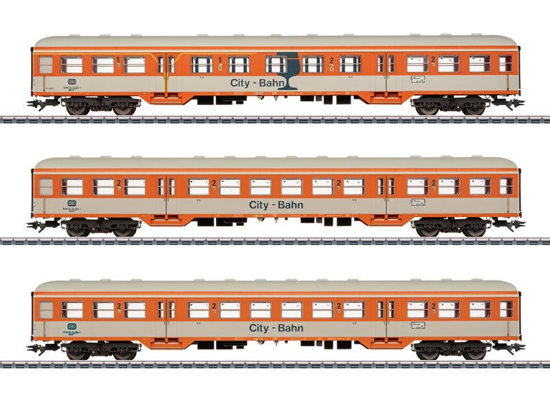 Předloha: Sada sestávající ze tří osobních vozů různých typů Německé spolkové dráhy (DB). Dva vozy typu Bnrzb 778.1 2. třídy a jeden vůz typu ABnrzb 772.2 1/2. třídy s bufetovým oddílem. Trať: Kolín nad Rýnem-Gummersbach. Čistě oranžovo-šedý zbarvení. Provozní stav od roku 1986. Model: Podvozky specifické pro daný typ. Podvozky s kotoučovými brzdami. Samostatně aplikovaná madla na koncích vozu. Všechny vozy s továrně instalovaným vnitřním LED osvětlením. Každý vůz má vyrovnávací kondenzátor pro překlenutí krátkodobých výpadků proudu. Rozpojitelná vodivá spřáhla s kinematikou. Vnitřní osvětlení funguje ve spojení s řídicím vozem 43833. Tištěné cílové. Svody toalet a schůdky pro posunovače jsou součástí dodávky jako samostatné připojitelné díly. Minimální poloměr pro provoz: 360 mm. Všechny vozy jednotlivě baleny v dodatečném vnějším obalu. Měřítko délkového zmenšení 1:93,5. Odpovídající lokomotiva City-Bahn řady 218 je k dispozici v řadě Märklin H0 pod číslem položky 39228. Odpovídající řídicí vůz a expresní servisní vůz je k dispozici také v řadě Märklin H0 pod čísly položky 43833 a 42831. Není vhodné pro děti do 15 let.