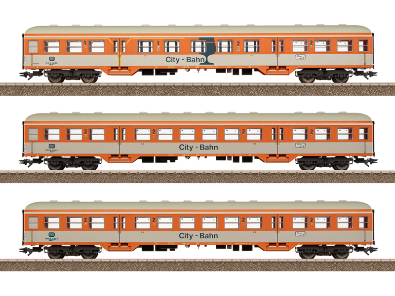 Předloha: Sada sestávající ze tří osobních vozů různých konstrukcí DB. Dva vozy typu Bnrzb 778.1 2. třídy a jeden vůz typu ABnrzb 772.2 1/2. třídy s bufetovým oddílem. Trasa vlaku: Cologne-Gummersbach. Základní barevné schéma čistě oranžové/oblázkově šedé. Provozní stav od roku 1986. Model: Typově specifické spodky vozů s podvozky s kotoučovými brzdami. Samostatně připevněná madla na koncích vozů. Všechny vozy mají standardně nainstalované LED osvětlení interiéru. Pro přemostění krátkodobých napěťových výpadků je v každém voze instalován vyrovnávací kondenzátor. Vybaveno oddělitelnými, proudem přenášejícími těsnými spřáhly. Vnitřní osvětlení funguje ve spojení s řídicím vozem 23235. Natištěné cílové tabulky. Toaletní svody a madla pro posunovače jsou přiloženy jako samostatně připojitelné díly. Minimální průjezdný rádius 360 mm. Všechny vozy jsou jednotlivě baleny v doplňkovém vnějším obalu. Délka přes nárazníky na auto 28,2 cm. Odpovídající lokomotivu City-Bahn řady 218 naleznete v řadě Trix H0 pod číslem položky 22646. Odpovídající řídicí vůz naleznete také pod číslem položky 23235 a také expresní služební vůz značky Märklin H0 pod číslem položky 42831 s odkazem na požadovanou výměnu dvojkolí. Není vhodné pro děti do 15 let.
