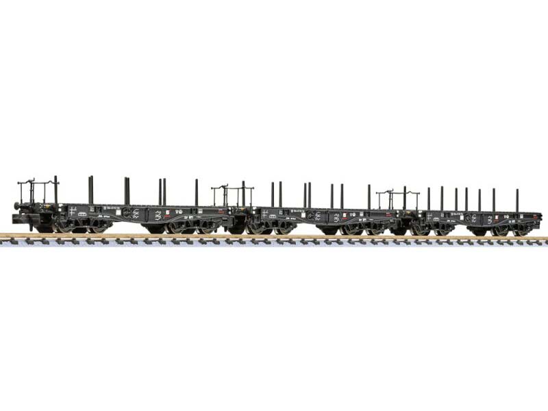 Třídílný set plošinových vozů pro těžkou přepravu typu SSys Köln DRB, provozní stav z roku 1945. Provozní čísla 40 512, 40 516 a 40 519. Prolomené rámy vozů. Jednotné podvozky Deutz. Čtyřsloupkové zábradlí, klanice a pojezdové plechy přiloženy. Kinematika krátkého spřáhla s šachtou NEM 355. Minimální poloměr oblouku 192 mm. Není vhodné pro děti do 14 let.