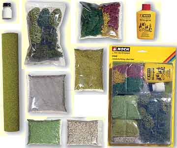Sada obsahuje hmotu na skály, koberec 45 x 30cm, sypanou statickou trávu + aplikační lahvičku, lepidlo na posypy, 6 jehličnatých + 4 listnaté stromky, 4 barvy islandského mechu, posypové kamení, zelený posypový materiál. Vhodné pro velikosti H0,TT,N. Nevhodné pro děti do 15 let.