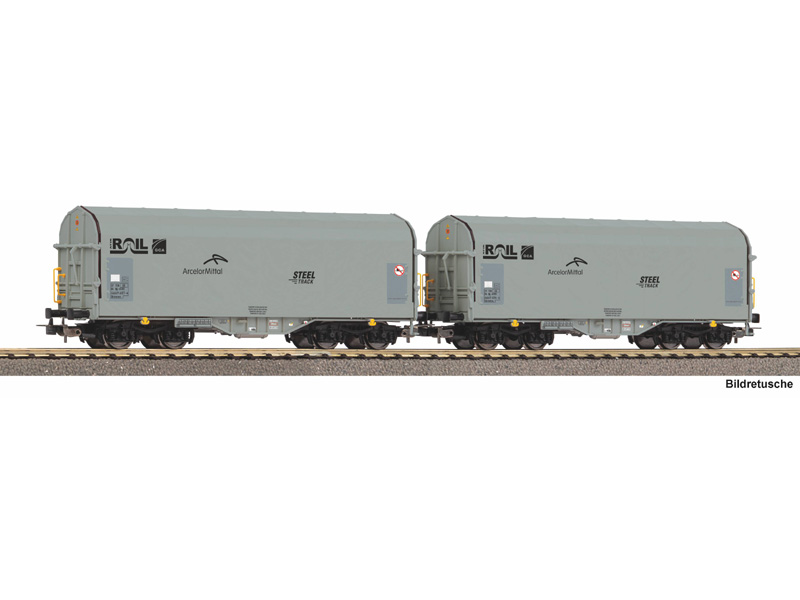 Set dvou zavřených nákladních vozů krytých plachtou. Vynikající jízdní vlastnosti. Kinematika krátkého spřáhla s šachtou dle NEM. Minimální poloměr oblouku 358 mm. Není vhodné pro děti do 14 let.
