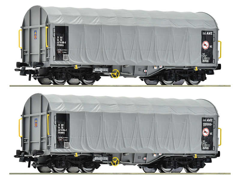 Set dvou nákladních zavřených vozů Shimmns krytých plachtou. Kinematika krátkého spřáhla dle NEM. Není vhodné pro děti do 14 let.