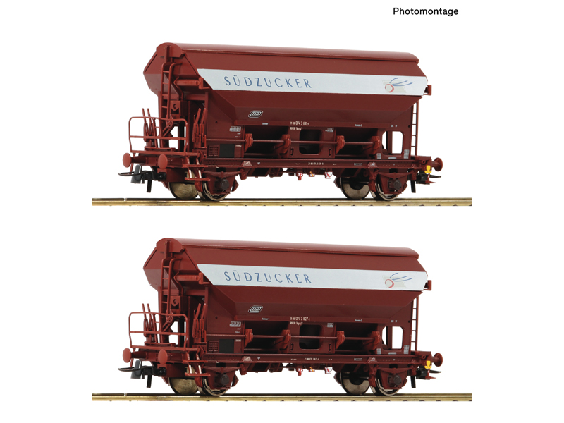 Set dvou výsypných vozů s posuvnou střechou typu Tdgs. Kinematika krátkého spřáhla se šachtou dle NEM 362. Nevhodné pro děti do 15 let.