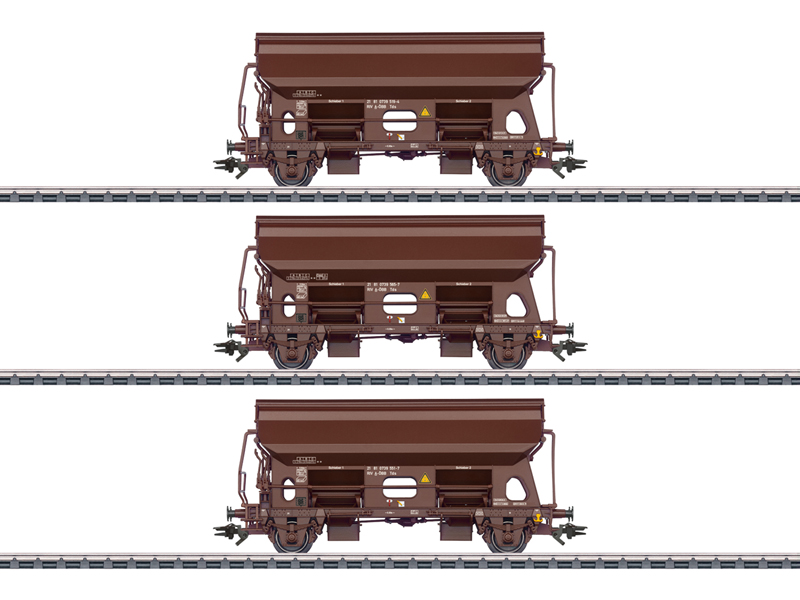 Předloha: Tři vagóny typu Tds s bočním vyklápěním a otočnými střechami Rakouských spolkových drah (ÖBB). Základní barva mahagonově hnědá. Provozní stav z roku 2011. Model: Jemně detailní, s mnoha samostatně aplikovanými detaily. Samostatně aplikované prodloužení žlabu. Otočná střecha je pohyblivá. Všechny vagóny jsou jednotlivě baleny v dodatečném vnějším obalu Výměnu dvojkolí za izolovaná DC E700500 provedeme zdarma. Nevhodné pro děti do 15 let.