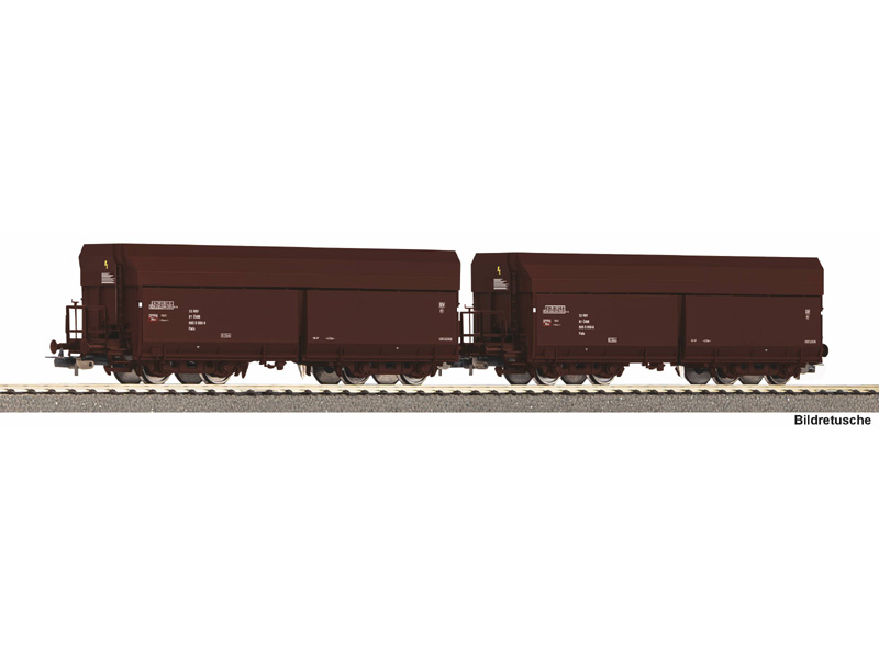 Set dvou samovýsypných vozů s brzdařskou plošinou. Vynikající jízdní vlastnosti. Minimální poloměr oblouku 358 mm. Není vhodné pro děti do 14 let.