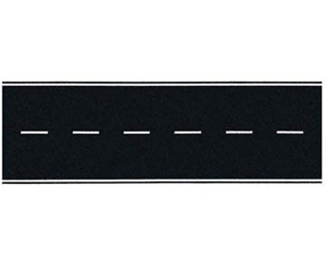 Celková šířka 80 mm, délka 1 m. Silnice je vyrobena ze speciální elastické otěruvzdorné fólie. Mírné zatáčky je možno vytvořit přímo díky pružnosti fólie. Pro vytvoření prudké zatáčky použijte “Univerzální zatáčku” k.č. 60701. Silnice je po sejmutí ochranné fólie na spodní straně samolepící. Určeno pro velikost H0. Nevhodné pro děti do 15 let.