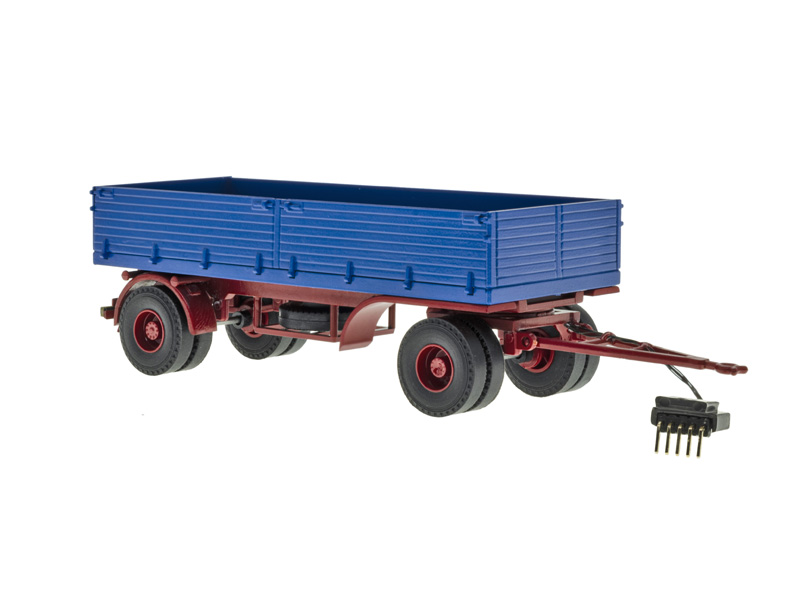 Modrý sklápěcí přívěs se zadním osvětlením. Má 5-pólovou zástrčku pro propojení s příslušným vozidlem. Brzdová, couvací, směrová a výstražná světla. Není vhodné pro děti do 15 let.