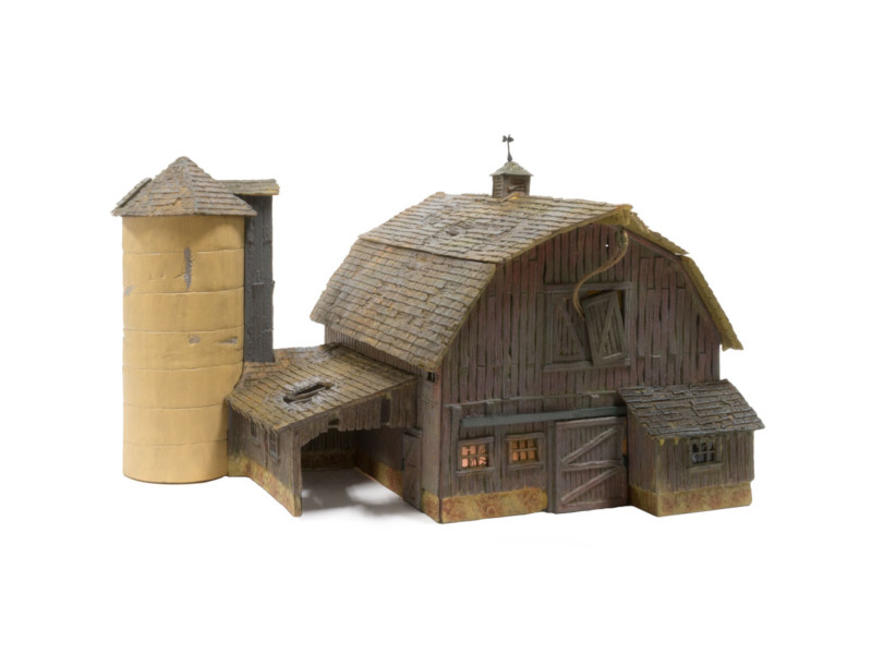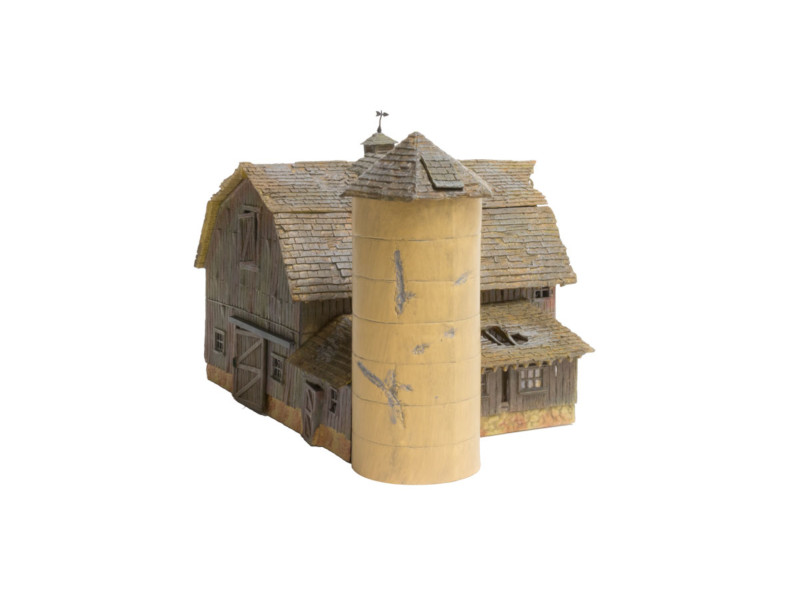 Hotový model staré rozpadající se stodoly. Vnitřní LED osvětlení. Rozměr: 8,09 x 10,7 cm, výška: 6,82 cm. Nevhodné pro děti do 14 let!