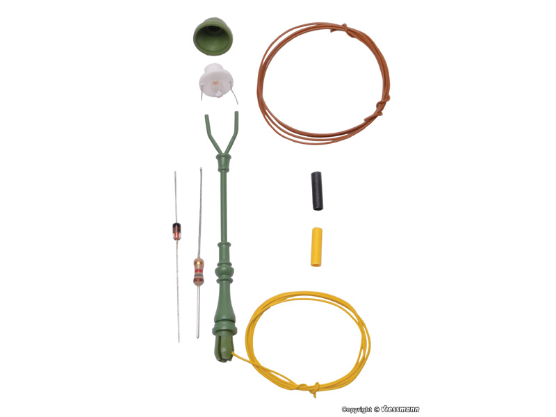 Kompletní sada. Bezúdržbová díky LED osvětlení. Prototypový mosazný stožár se zásuvnou základnou pro mimořádně snadnou montáž. Montáž bez pájení a nářadí. Výška: 5,6 cm.