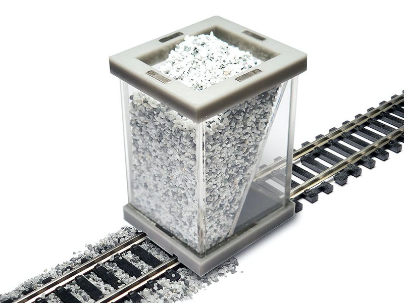 Štěrkovačka určena pro pokládku štěrku na modelovém kolejišti. Předností je zejména rovnoměrné a rychlé pokládání štěrku a pravidelný tvar náspu. Způsob použití: násypka se naplní štěrkem příslušné hrubosti a odstínu. Sunutím po koleji je nasypán štěrk mezi pražce. Po případné korekci nasypaného štěrku se tento zakápne lepidlem.