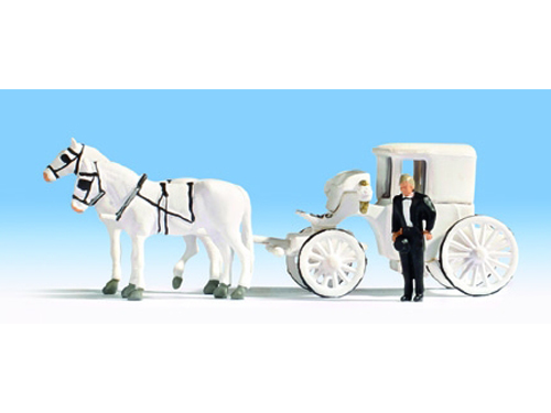 Balení obsahuje 2 koně a svatební kočár. Nevhodné pro děti do 15 let.