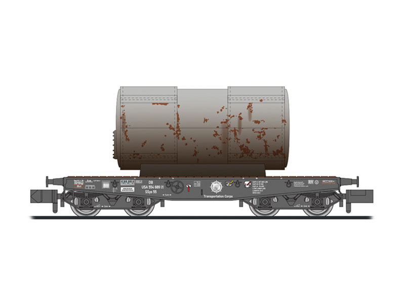 V letech 1955 až 1956 nechala Spolková vláda postavit pro USATC celkem 338 podvozkových plošinových vozů jako repliky SSy 45ale s některými úpravami. Na konstrukci vagónů se podílely společnosti Talbot, SEAG a DWM. Vozy dostaly masivní přejezdové konzoly, upínací konzoly, háky na tanky a masivní lanové smyčky na čela. Byly dodávány s podvozky Minden-Dorstfeld a obecně bez klanic a zábradlí. V letech 1977/78 USATC vrátilo všechny vozy Spolkové republice, takže Bundeswehr obdržel 200 a DB zbývající vozy. U DB byly označeny jako Rlmmps 650 a byly zde používány až do roku 1997. Některé z nich se v německých ozbrojených silách používají dodnes. Model: Podvozkový plošinový vůz pro těžkou dopravu typu SSys 55 USATC (USA Transportation Corps). Provozní stav z roku 1958. Provozní číslo 554 689. Rám vozů SSy 55 / Rlmmp 650, provedení bez klanic.. Podvozky Minden-Dorstfeld DB 931. Přiloženy přejezdové desky. Kinematika krátkého spřáhlo s šachtou dle NEM 355. Minimální poloměr oblouku 192 mm. Není určeno pro děti do 14 let.