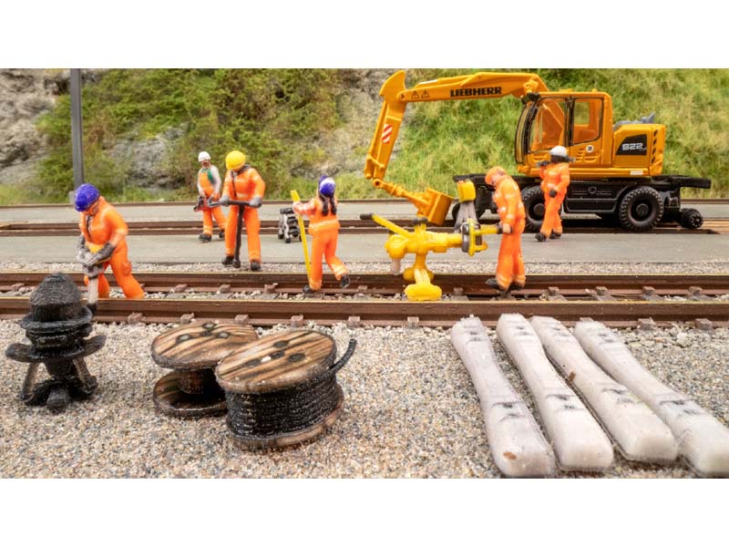 Sada obsahuje 6 figurek pracovníků, z toho 1 pracovník s univerzálním šroubovákem, 4 pražce, 2 sudy na kabely, 2 sudy na olej, 1 schůdek, 1 bezpečnostní siréna, 1 kelímek na svařování termitem.