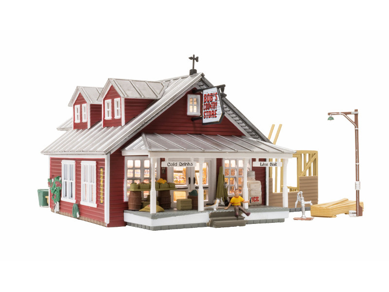 Hotový model venkovského obchodu. Součástí balení je mnoho dekorativních doplňků. Vnitřní LED osvětlení. Rozměr: 18 x 17,3 cm, výška: 7,93 cm. Nevhodné pro děti do 14 let!
