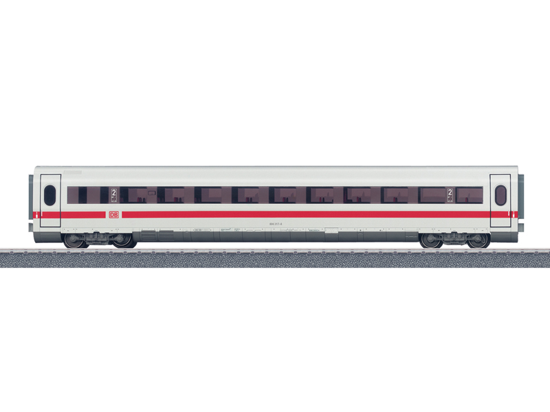Předloha: Vložený vůz 2. třídy (řady 806.3) pro vysokorychlostní vlak ICE 2 společnosti Deutsche Bahn AG (DB AG). Model: Vůz s vnitřním vybavením a tónovanými bočními okny. Dvojkolí DC E700580 se prodává samostatně. Otevřený vůz je vhodný jako doplněk k vlakové soupravě 36712. Není vhodné pro děti do 6 let.