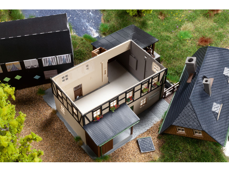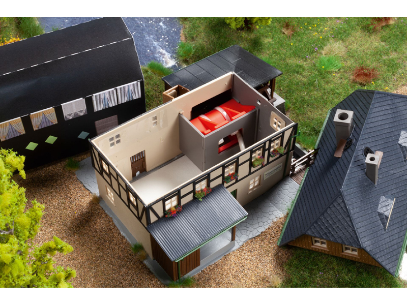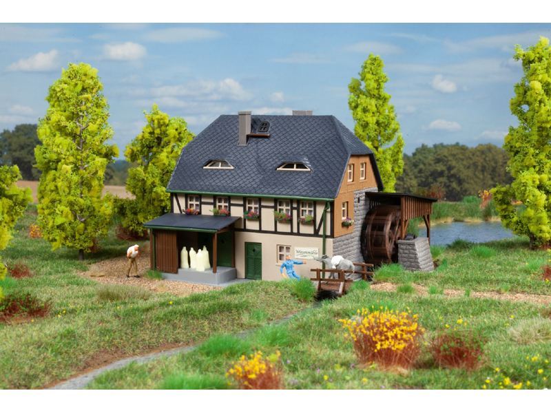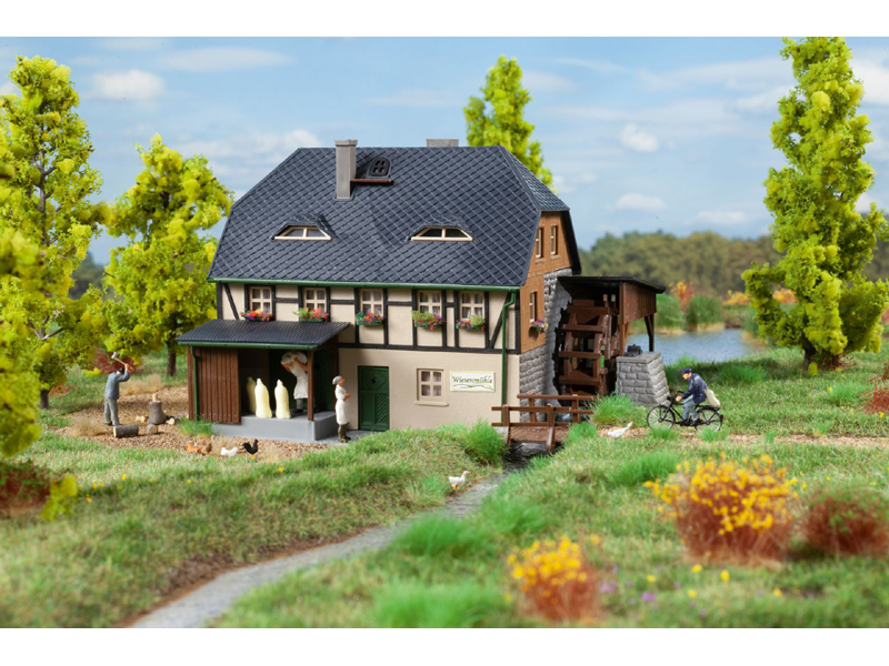 Model vodního mlýnu je hrázděná stavba typická pro venkov, s valbovou střechou pokrytou břidlicí. Má vodní kolo a malý příkopový most. Otáčející se vodní kolo lze při stavbě doplnit o motor (položka č. 58 200), a vytvořit tak iluzi fungujícího mlýna na olej nebo mouku. Vhodné pro velikosti H0, TT. Není určené pro děti do 14 let.