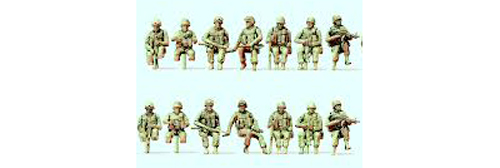 14 barvených sedících figurek připravených k boji, včetně řidičů.